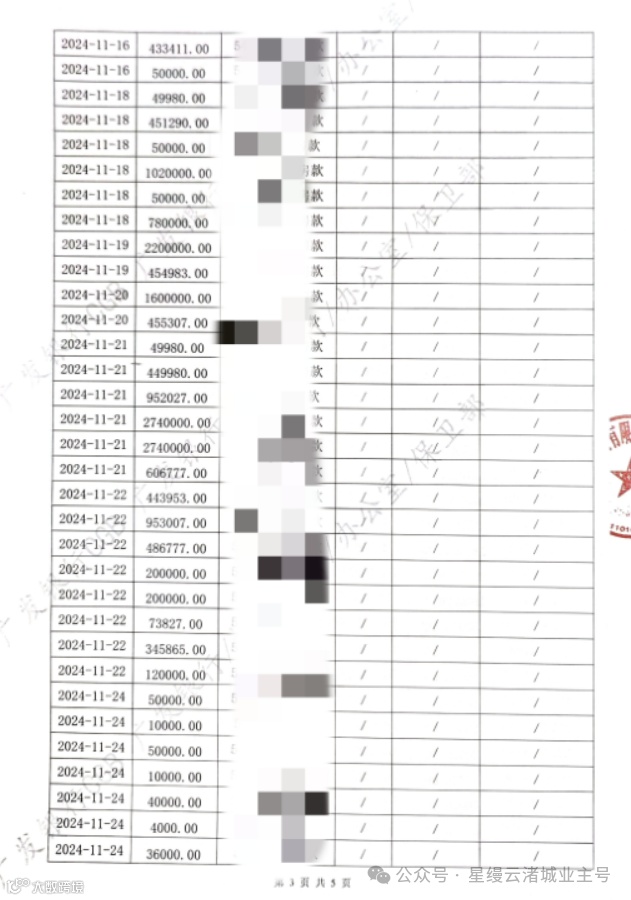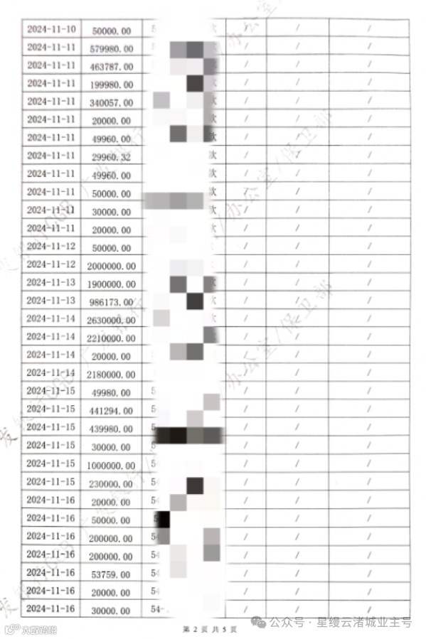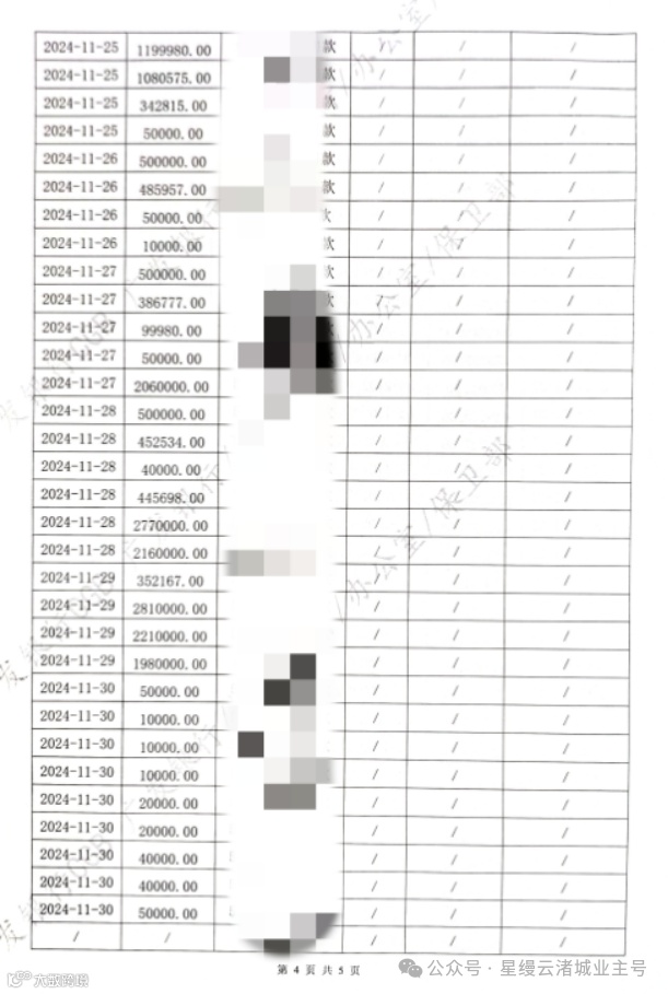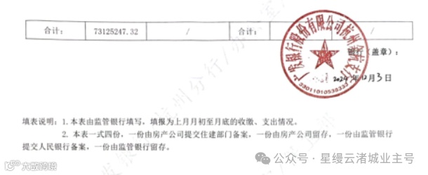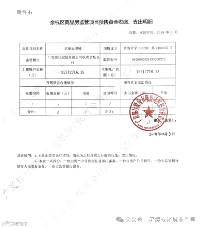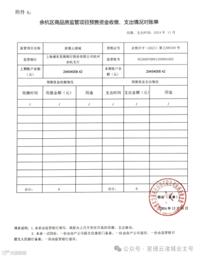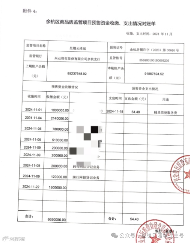 星缦云渚预售监管资金对账单|11月