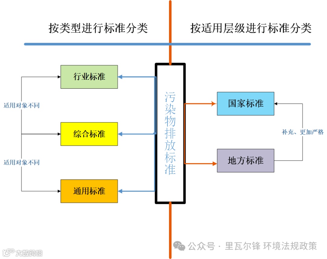 按标准类型进行分类,分类王炸级区域流域标准,及行业标准、通用标准、综合标准。按级别分类,分为执行高顺位的地方标准及低顺位的国家标准。按照标准类型(不算王炸)及层级组合,共计6种组合。流域标准凌驾于行业、通用、综合之上。具体见图1和图2所示。