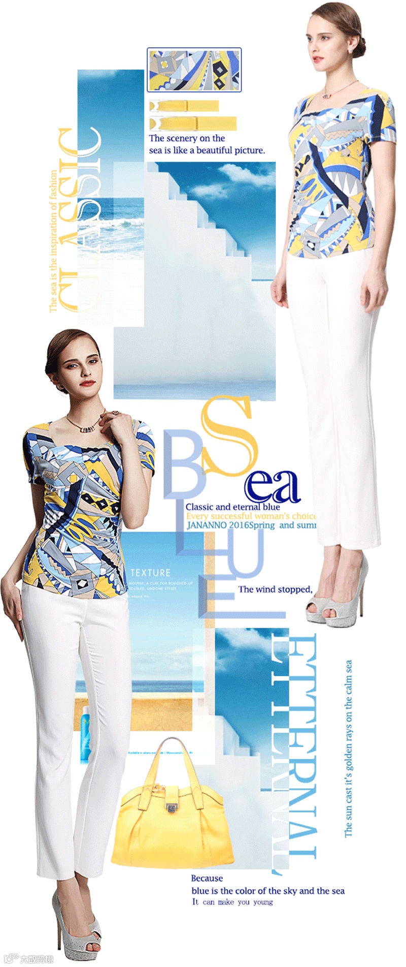 JANANNO 简爱诺 2016年春夏度假系列,结合Saipan 塞班岛优美的画卷,为都市成功女性打造一场时尚的蓝色盛宴。