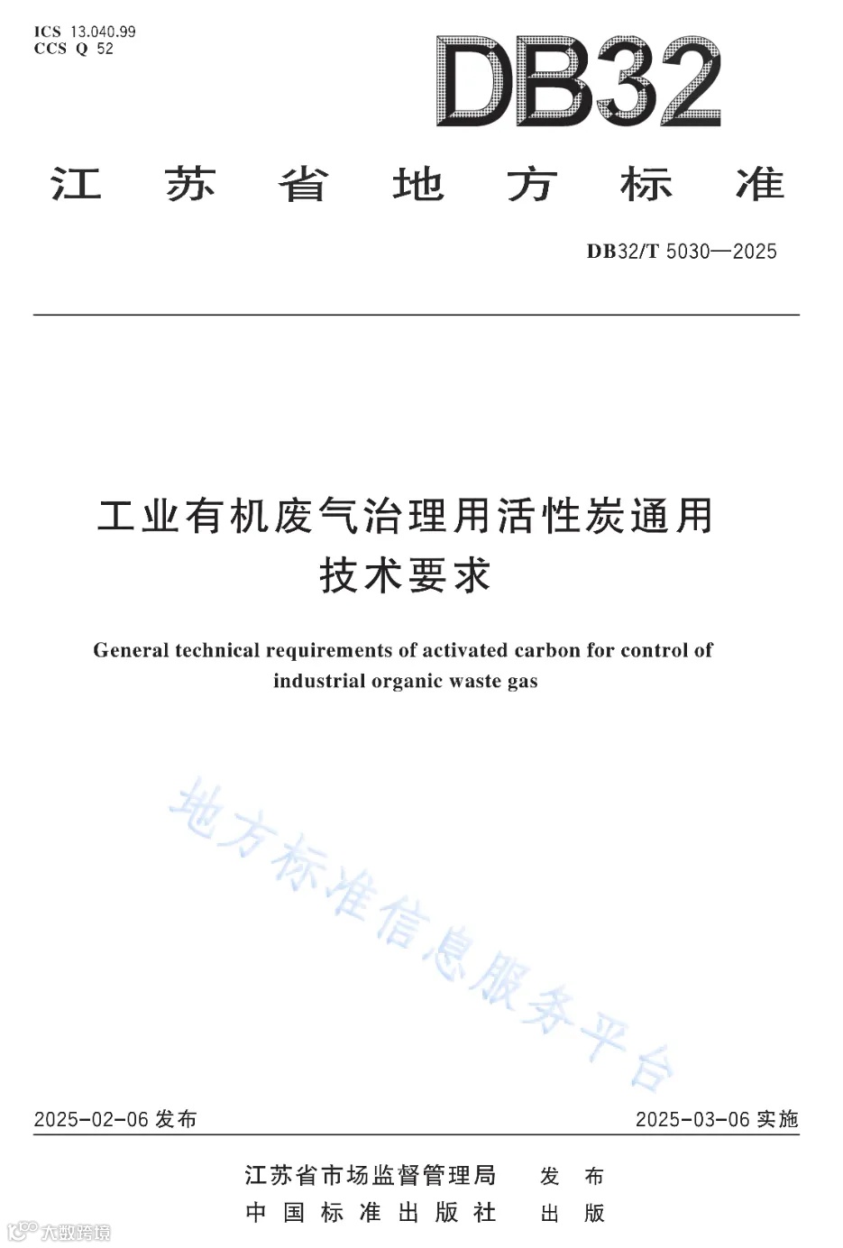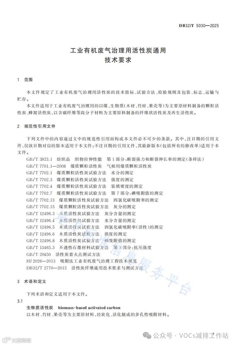 近日,江苏省市场监督管理局发布了地方标准江苏省《工业有机废气治理用活性炭通用技术要求》(DB32T 5030-2025).pdf。该标准将于2025年3月6日起实施。