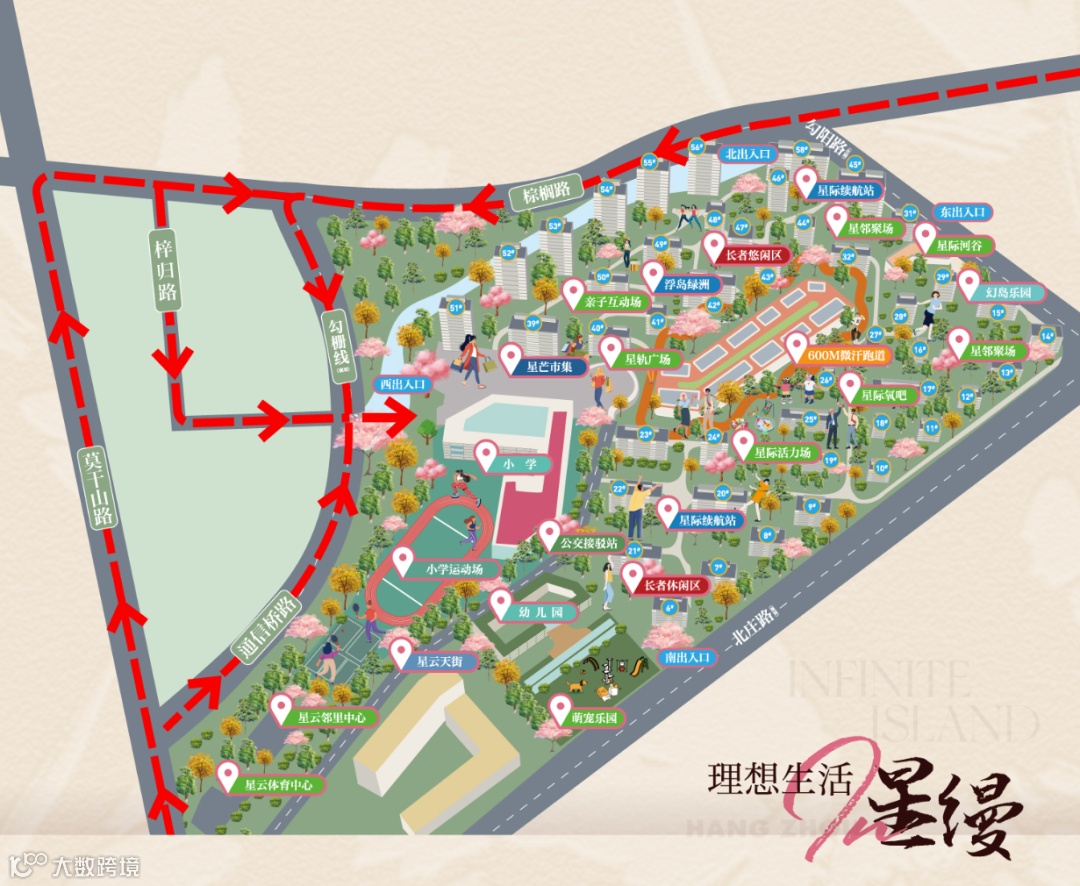 如一颗璀璨星辰镶嵌于城市版图之上,星缦云渚位于北部新城C位,拥抱地铁2、4、8(规划)、20(规划)号线多铁交汇时代,约1千米抵达莫干山高架,近邻主干道棕榈路,勾阳路(在建),便捷通达杭州核心生活圈。