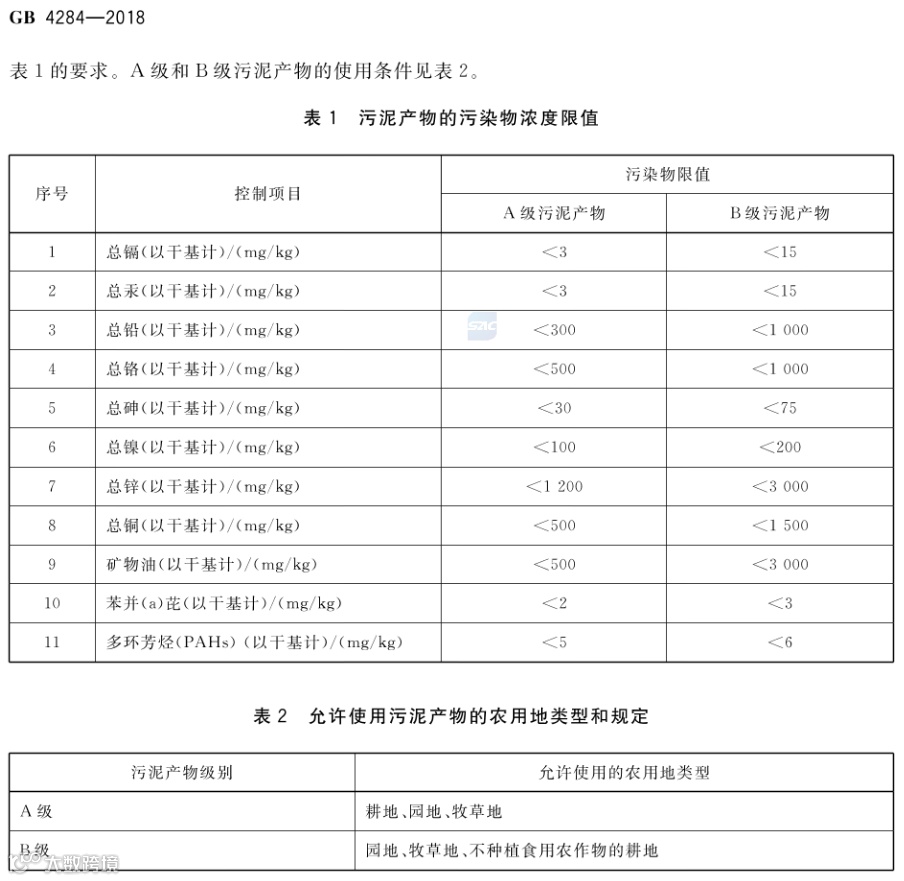 而另一个标准 《GB 4284-2018 农用污泥污染物控制标准》,从2019年6月1日开始实施,目前并没有废止。这个标准从重金属等污染物浓度、卫生学指标、理化指标等方面,对农用的污泥进行了规定。