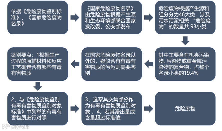 处理处置及污染防治技术政策(试行)》,五步即可判定污水污泥是否属于危险废物,如下图所示: