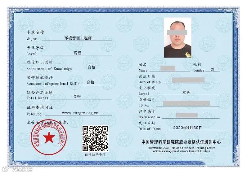 国家和行业认可的环保领域证书样例
