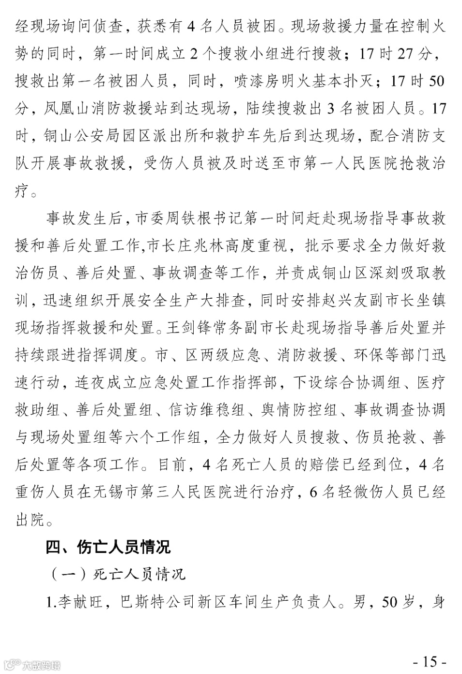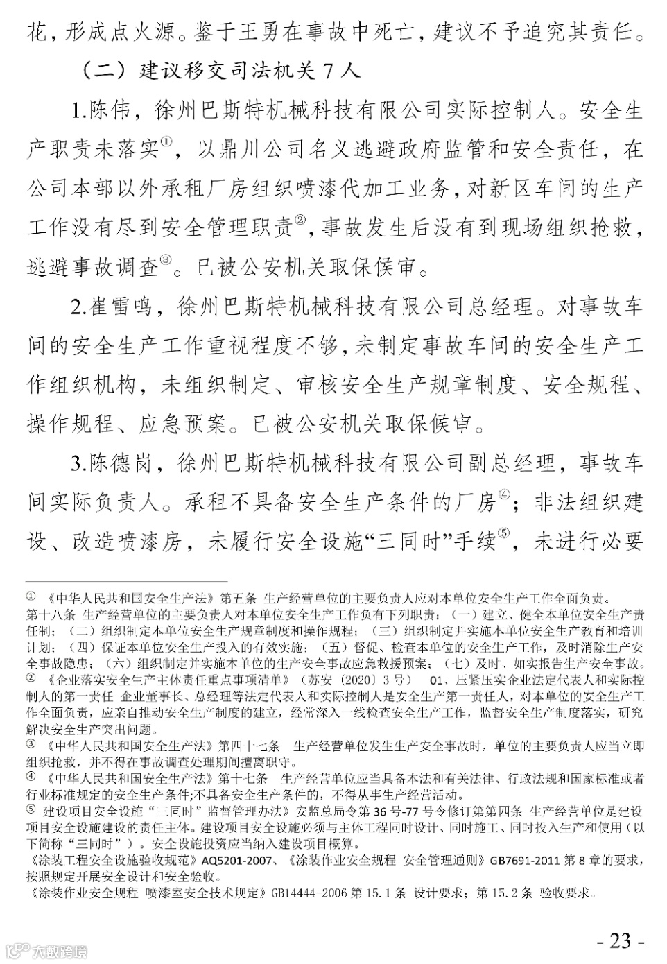 2020年9月12日16时54分左右,位于徐州高新技术产业开发区内的徐州巴斯特机械科技有限公司的喷漆房发生爆燃事故,造成4人死亡,4人重伤,6人轻微伤。直接经济损失约2640万元。经调查认定,徐州高新技术产业开发区徐州巴斯特机械科技有限公司喷漆房“9·12”较大爆燃事故是一起生产安全责任事故。