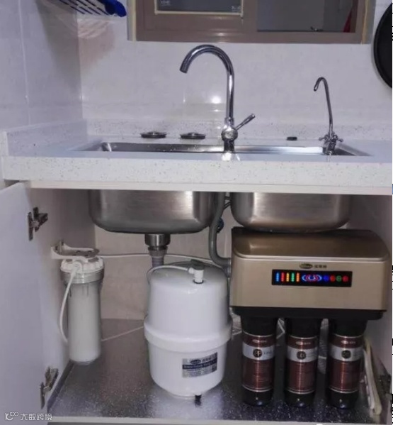 通常安装在厨房水槽下面橱柜里,以提供洗碗、洗菜、饮用水,这个位置靠近水源和下水道,取水和排脏水都很便利,但需要有电源插口配合使用。现在市场上安装较多的后置净水器有RO反渗透式和UF超滤式两种。