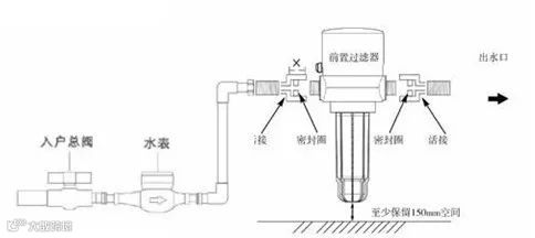 前置过滤器的滤芯通常为PP滤芯和活性炭复合滤芯。安装时,底部要留出充足的空间,以方便更换滤芯。