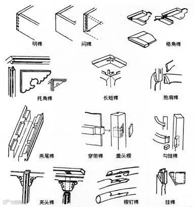 红木家具常用榫卯种类多达几十种,如格角榫、抱肩榫、燕尾榫、楔钉榫等。合理选择,运用不同的榫卯,可将家具的各部件作交叉接合、平板拼合、直材接合、板材拼合、横竖材接合、弧形材接合等等。