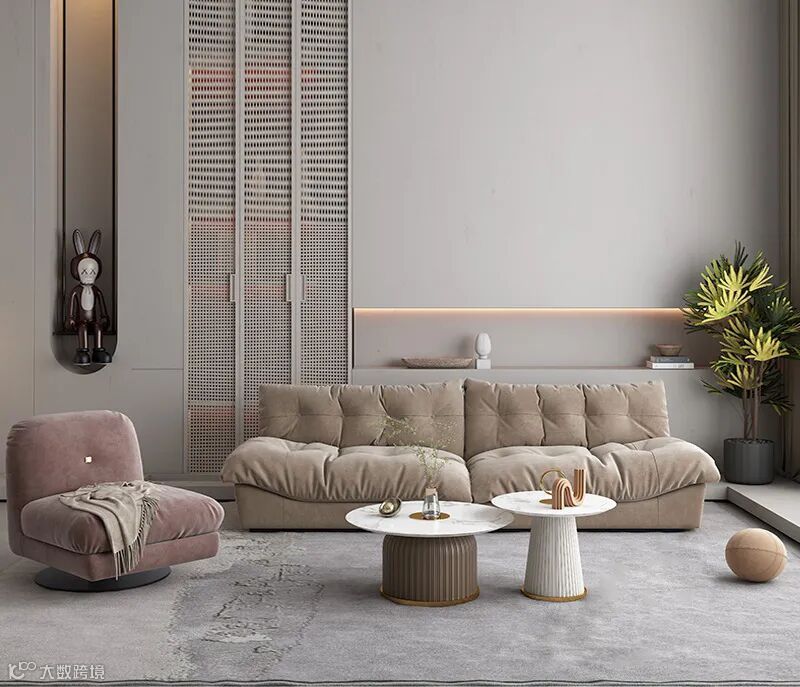 Milano沙发被称为云朵沙发的原因不仅是因为其蓬松的外形,更是柔软的触感,沙发的色彩和设计都偏向于质朴,看似平凡的整体造型却处处透露出低调的奢华。