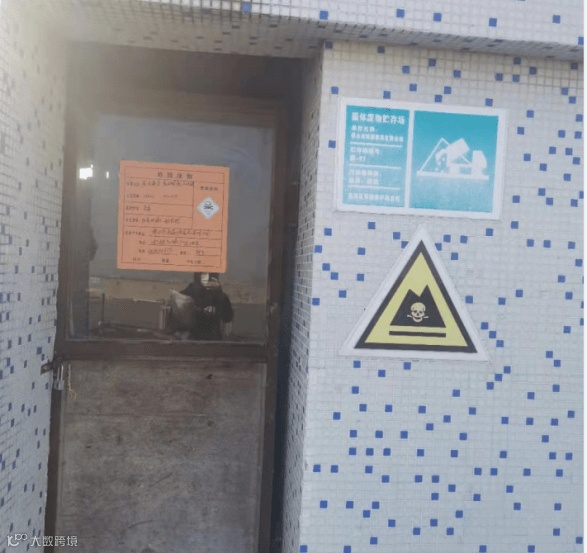 危废仓库以及废物包装容器上必须按要求设置危废警示标识(三角形骷颅头)和标签(长方形橙色标签)。