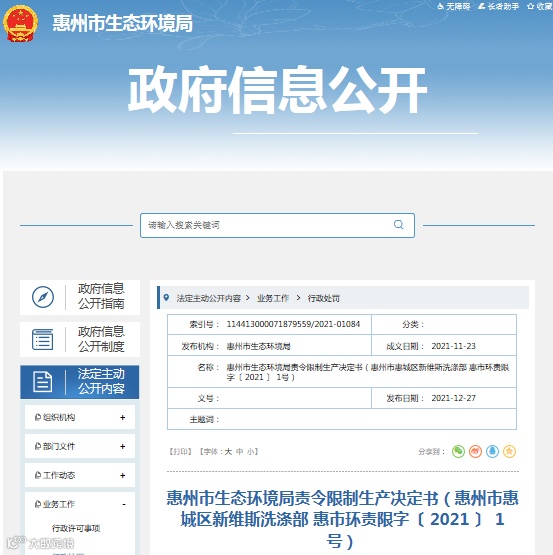 来源:惠州市生态环境局政府信息公开网 整理:环保莞家