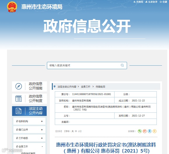 来源:惠州市生态环境局政府信息公开网