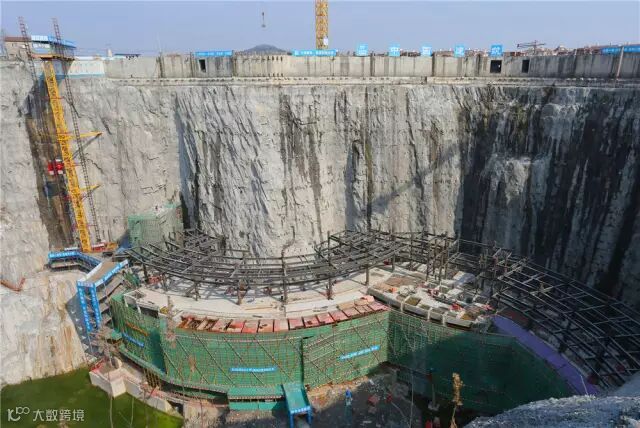 后来,考虑到混凝土向下超深输送,也存在着施工技术上的超高难度。建筑团队研发了“三级接力”和“一溜到底”两大输送技术,将混凝土向下运输的难度大大降低。