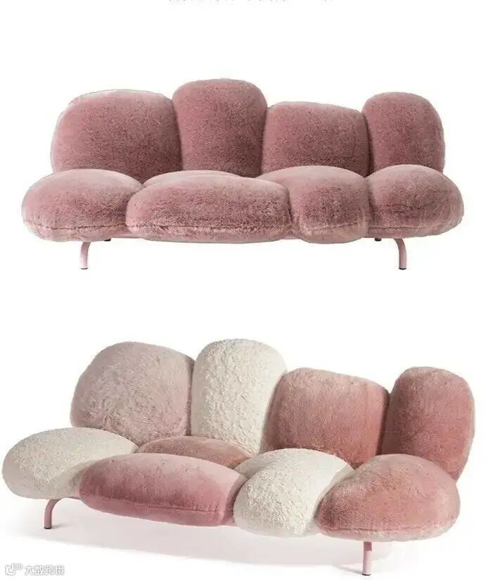 Vladimir Naumov以《怪物电力公司》长毛怪启发设计的Yeti“雪人”沙发,看起来像柔软的粉红色云彩。造型圆润,看起来有点臃肿,正因为这样的设计才显示出家具的可爱,特殊的皮毛面料覆盖在家具框架上,蓬松且舒适,看着很温暖也很温馨。