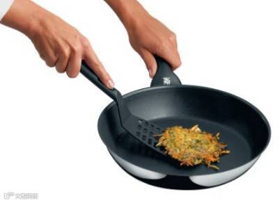 德国造不粘锅使用时请注意不要用不锈钢或铁造的锅铲,会对锅造成致命伤痕,请选择耐高温塑料铲或木铲。