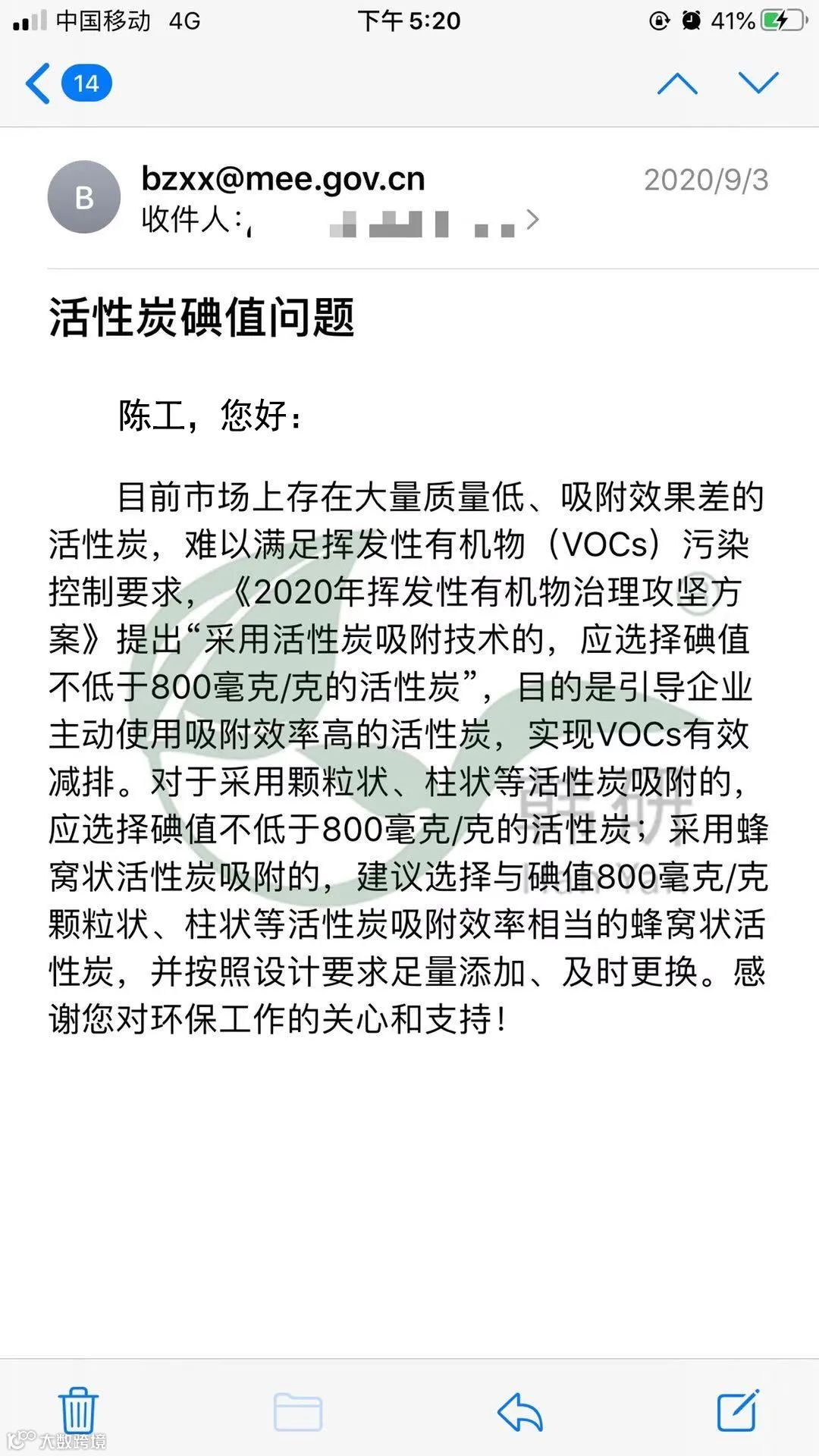 针对生态环境部的文件,某司技术研发工程师当即联系部长说明情况,积极沟通后,于2020年09月03日收到邮件回复补充说明: