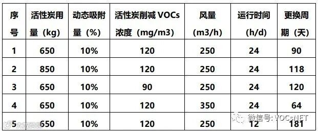 表 不同条件下活性炭更换周期计算案例