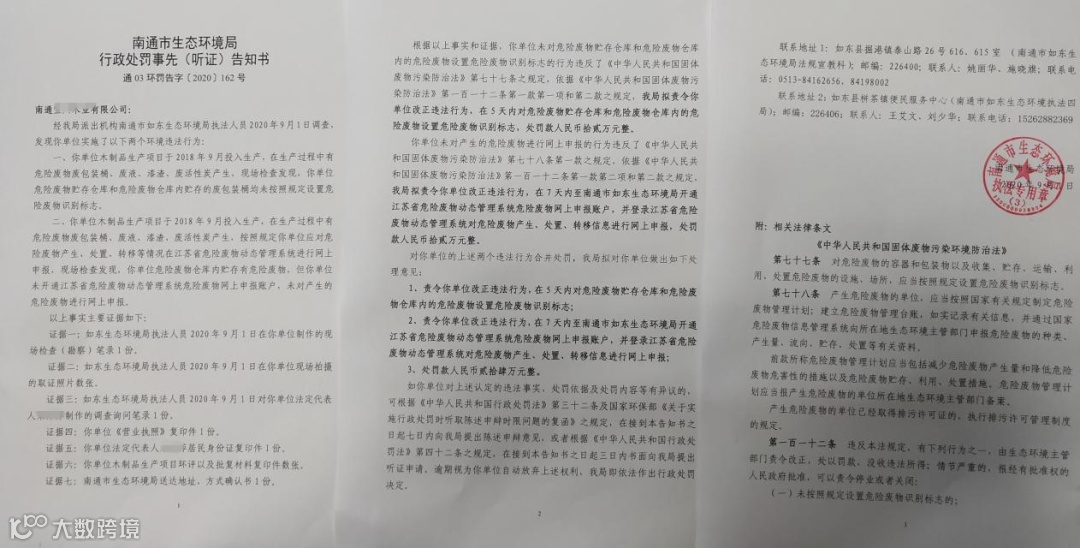 如东生态环境局执法人员在检查过程中发现一些企业存在固废管理不规范的情况。南通某木业有限公司位于如东县新店镇,2018年9月开始投入木制品加工项目生产,该项目在生产过程中有危险废物废包装桶、废液、漆渣、废活性炭产生,危险废物仓库内存放着废包装桶,但检查发现该单位未对产生的危险废物进行网上申报,危废仓库和危废仓库内存放的废包装桶也都没有设置危险废物识别标志。针对检查发现的该企业未对危废进行网上申报和未设置危险废物识别标志的两个违法行为,如东生态环境局进行了立案调查。按照新固废法的规定,对该企业的两个违法行为可以分别处以10-100万幅度范围内的罚款。经过案审会讨论,决定实施处罚,下达处罚告知,分别处以罚款12万元整,合计24万元。