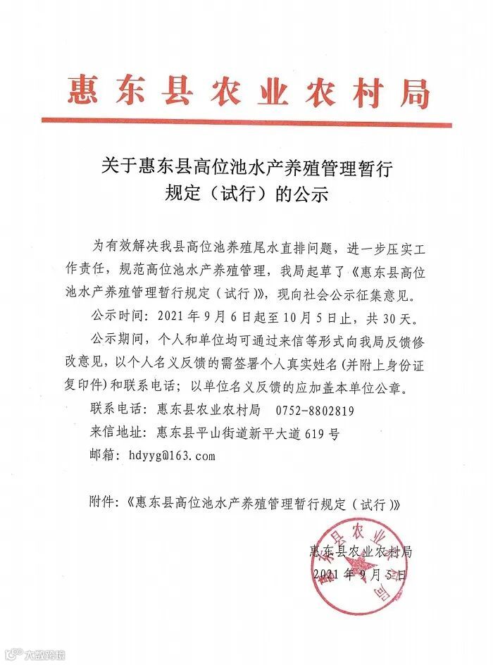 惠东县高位池水产养殖管理暂行规定
