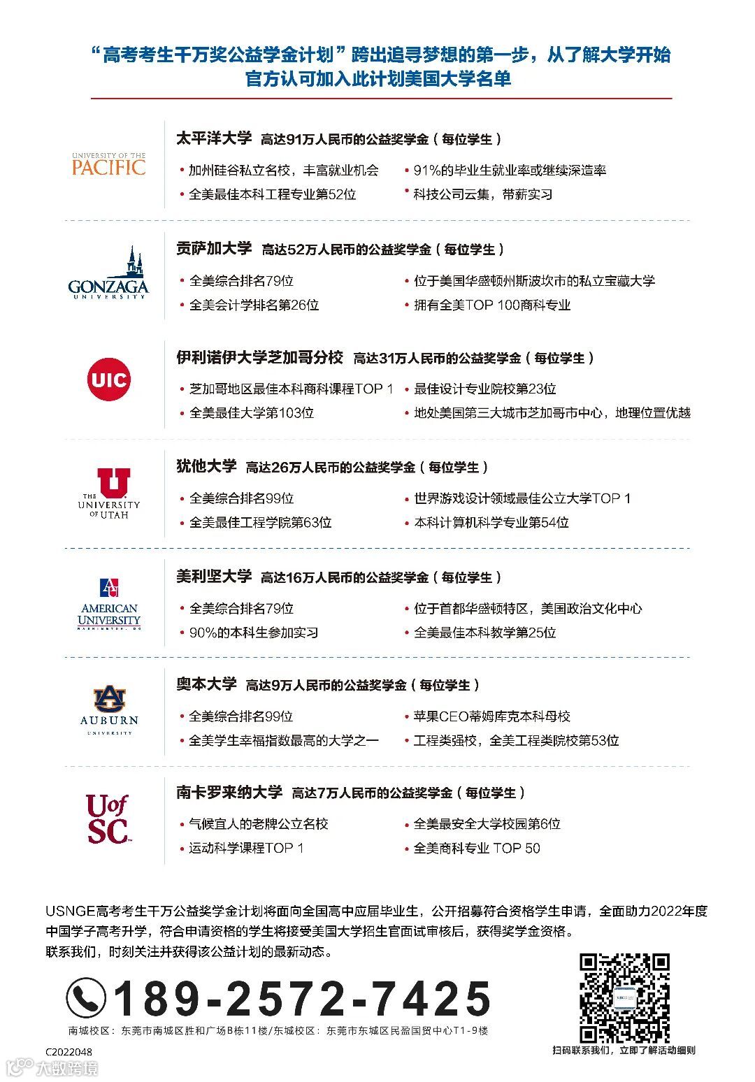 了解USNGE中国高考考生千万公益奖学金计划资料