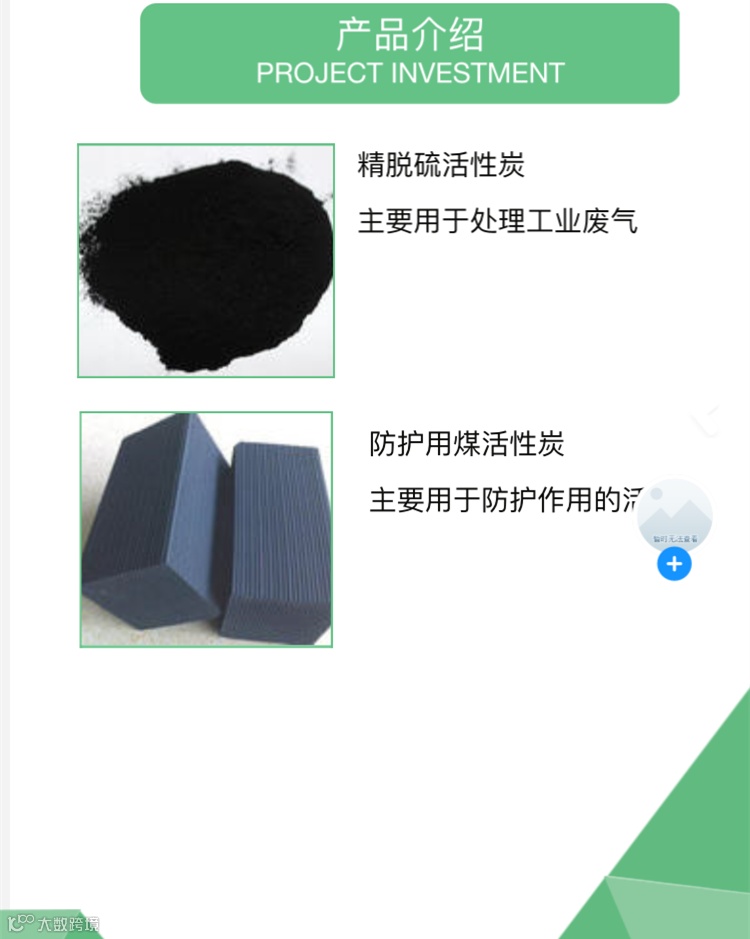 脱硫用煤质颗粒活性炭采用优质煤为原料,以物理活化法精制而成,黑色颗粒状、具有较大的硫容量,脱硫效率高、机械强度好、穿透阻力小易于再生等特点。广泛适用于热电厂、石油化工、煤气等气体脱硫。