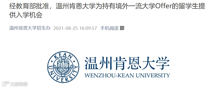 重要发布|经教育部批准,温州肯恩大学开展自主招生,缓解疫情下学生出国学习困难