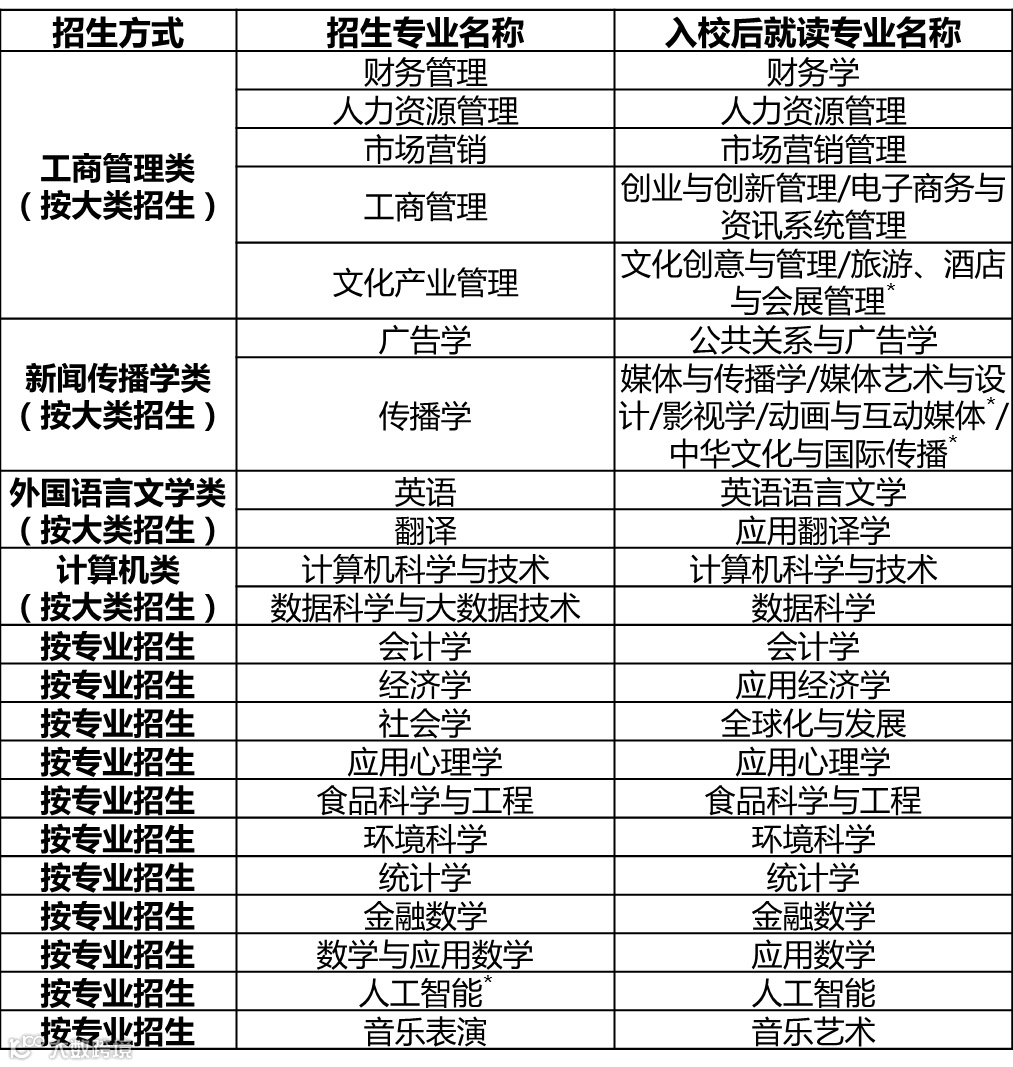 注:*人工智能为2021年新增专业,文化产业管理(旅游、酒店与会展管理)、传播学(动画与互动媒体)、传播学(中华文化与国际传播)为2021年新增专业方向。