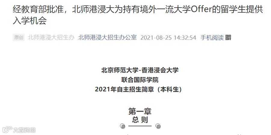 经教育部批准,北师港浸大为持有境外一流大学Offer的留学生提供入学机会。