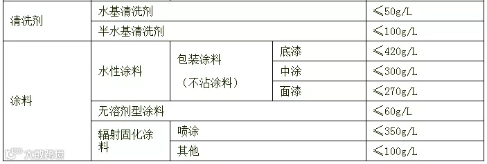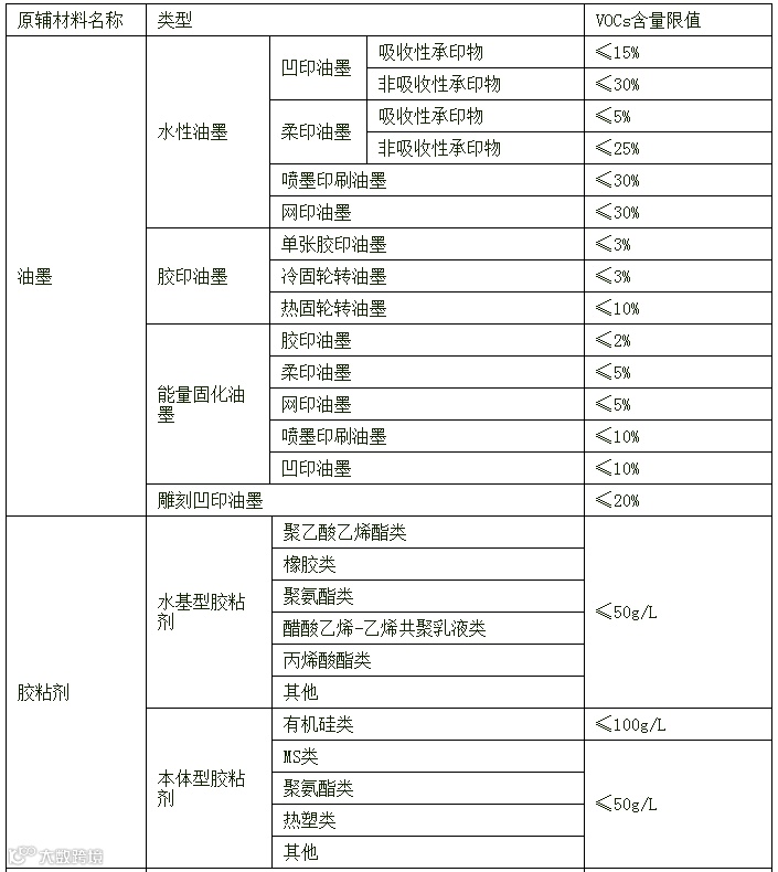 表1 印刷行业低VOCs含量原辅材料限值(摘录)