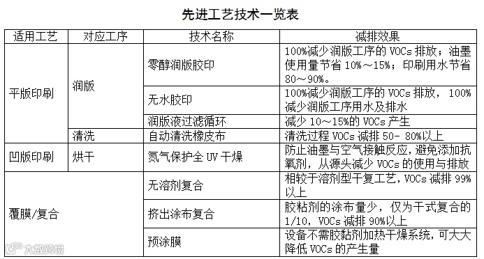 复合/覆膜工序,全面推广使用水性胶粘剂和无溶剂胶粘剂;上光工序,全面推广使用UV光油、水性光油;清洗工序,全面推广使用低挥发和高沸点的清洁剂(环保洗车水或W/O清洗乳液等);金属制品印刷全面推广使用水性和辐射固化涂料。