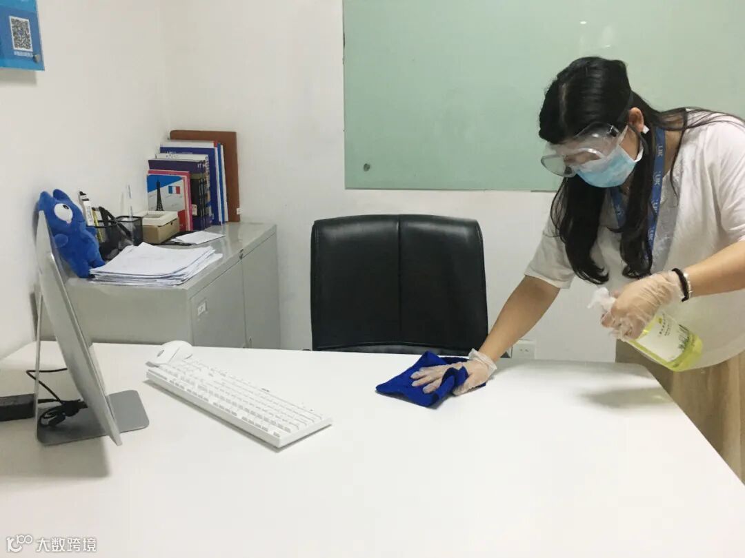 在正式复课前,校区工作人员在整个校区展开全面细致的消毒工作。对教室、会议室、办公区、走廊等地方进行了全方位的清洁消毒,确保每一位师生都能安全的环境里投入教学学习工作中。