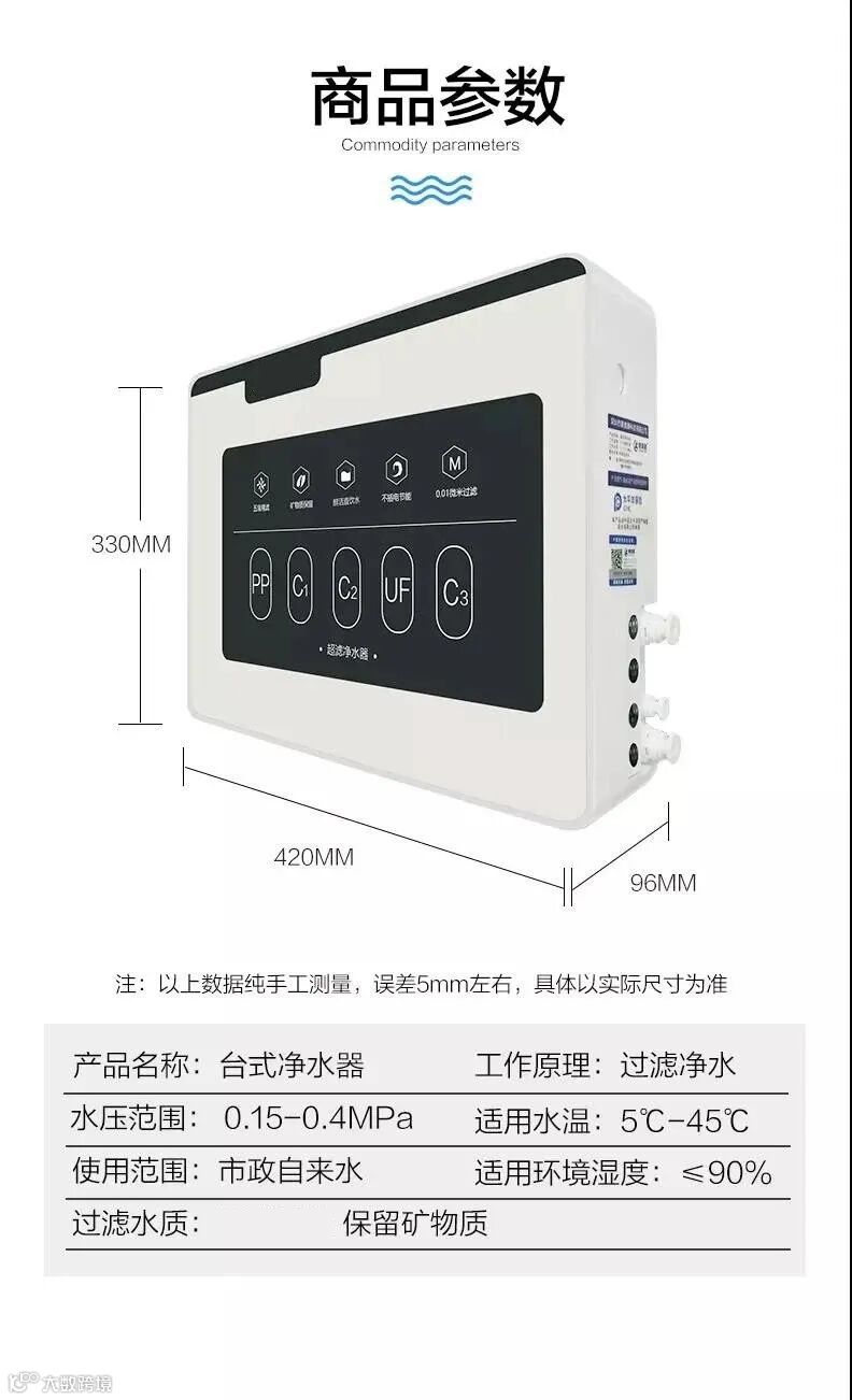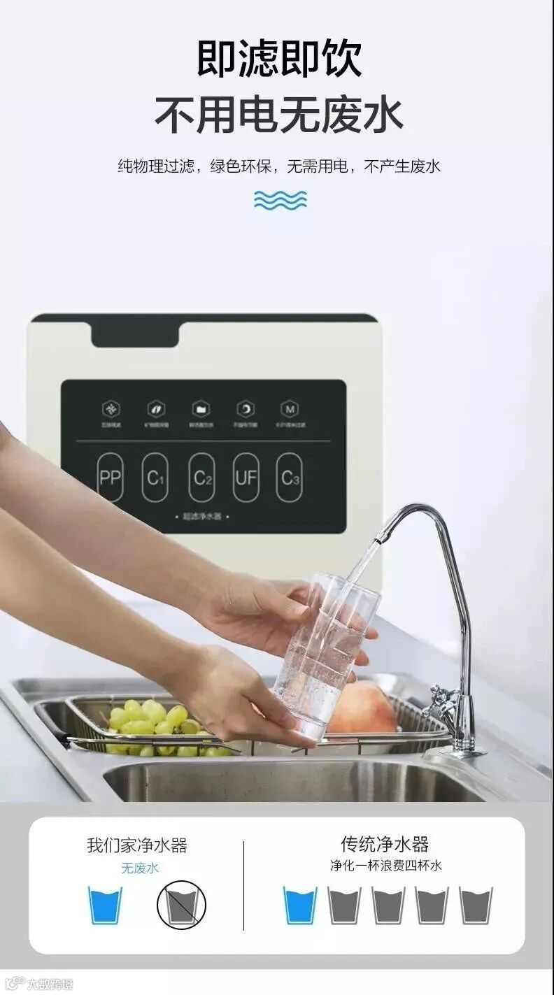 净水的TDS值(水质纯净度):UF超滤净水机的TDS值与自来水的TDS值没有太大变化,其过滤后的水的口感比自来水好一些。而RO反渗透纯水机过滤后的纯水TDS值明显大幅度降低,其水质口感最好。