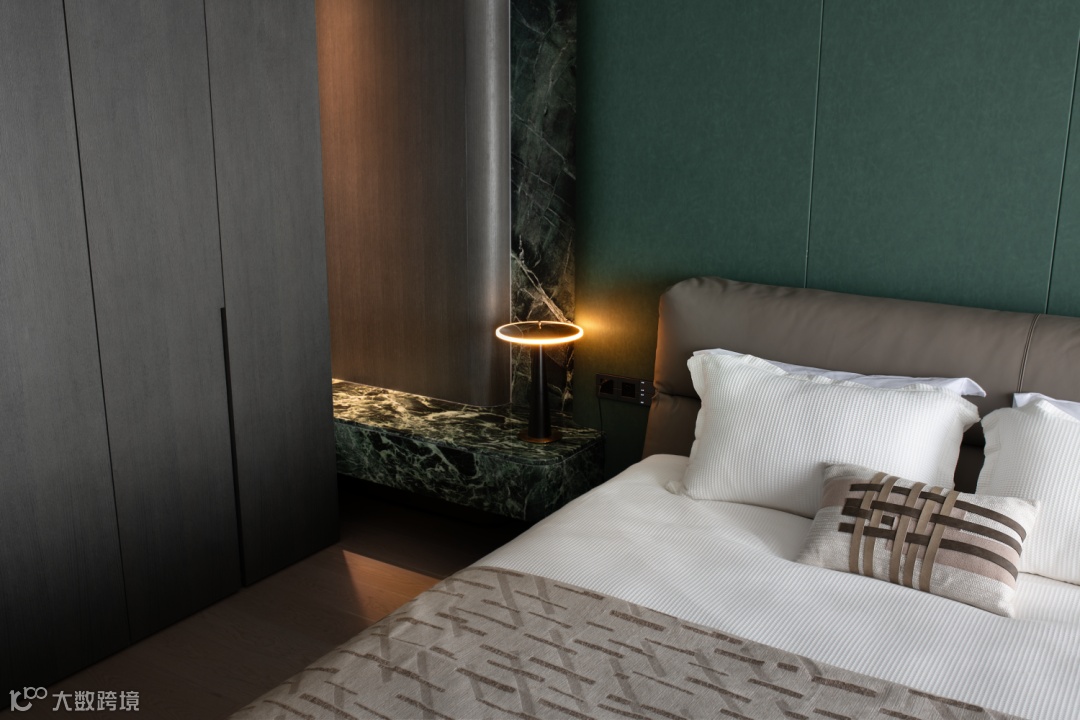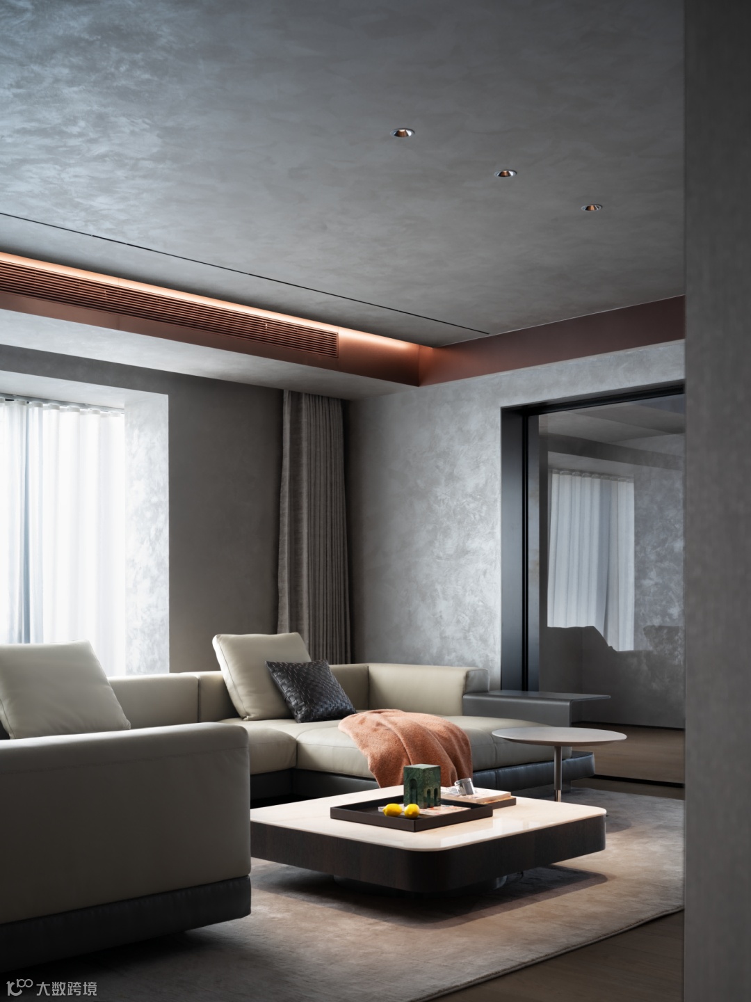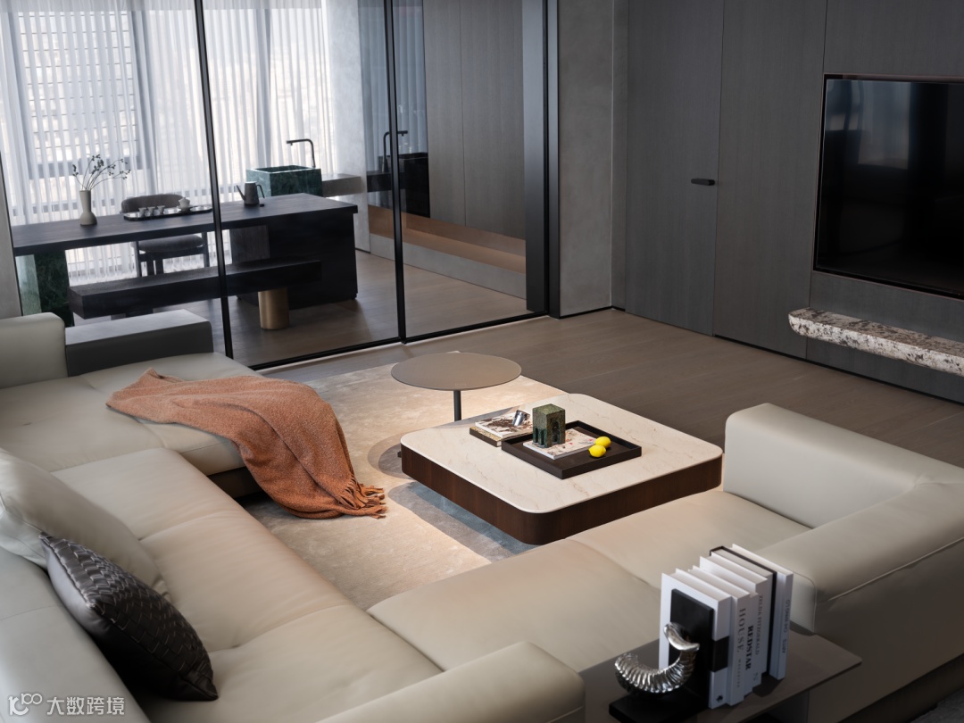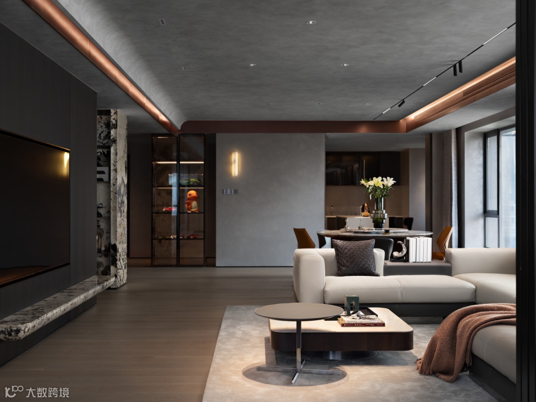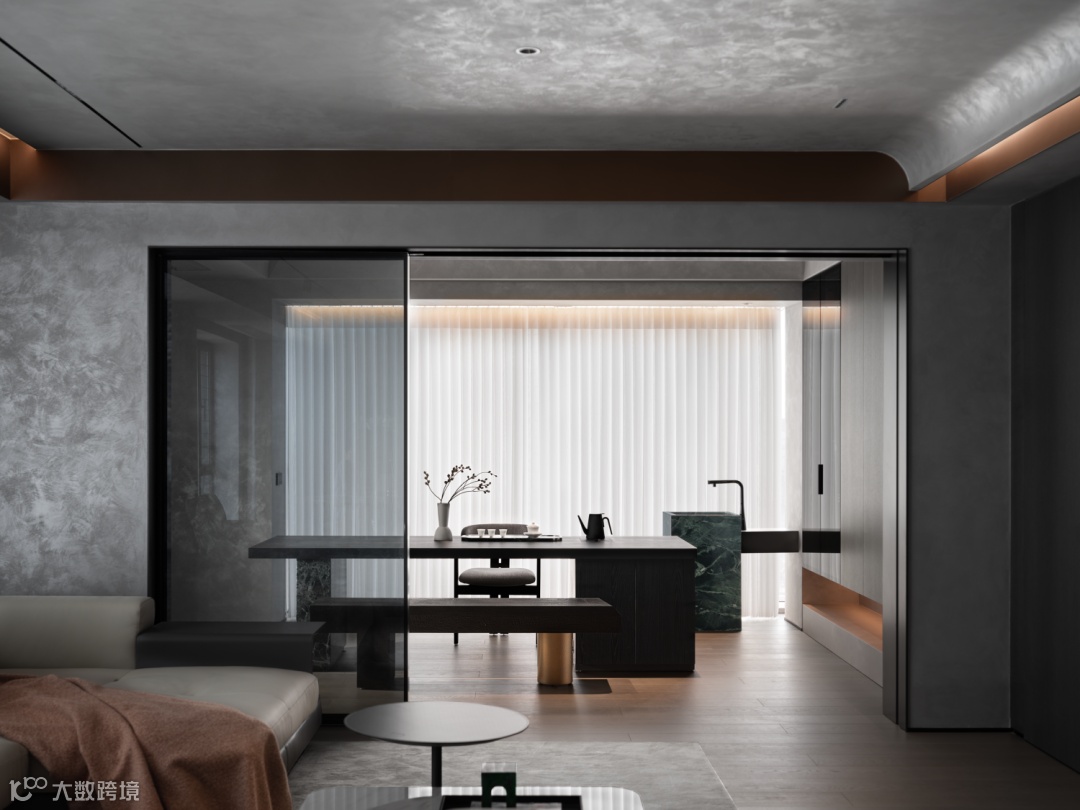 在空间的整体布局上,中性色为主,灰色阶以及木质的自然色调,营造出一种冷静而高雅的氛围,石材的点缀还赋予了整个环境以质感与沉稳的感觉。