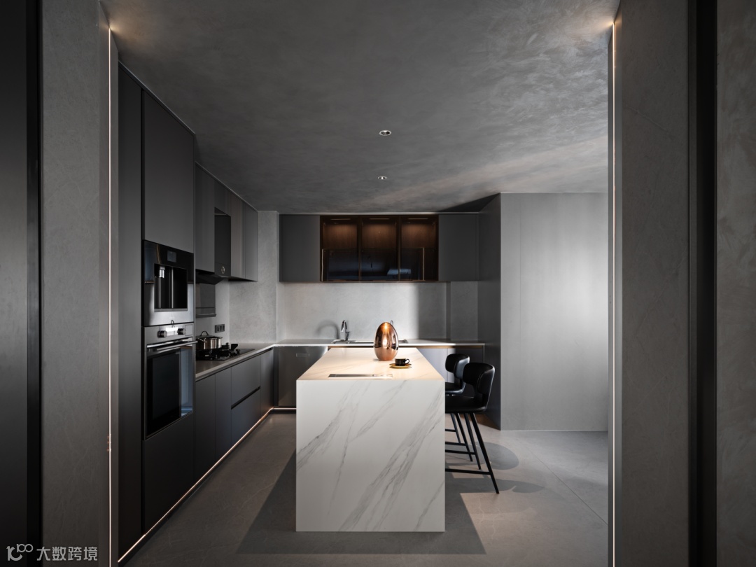 厨房的功能性不可缺少,设计师在保证了厨房基础功能性的同时,还建构了岛台,带来绝佳家庭互动的体验。