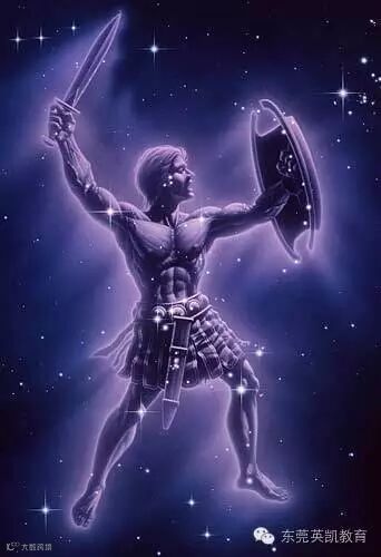 据说,波俄提亚的国王一直没有后代,后来Ozeus命他在一张公牛皮上小便(urinate on a bullhide),然后由神使Ohermes与海王Poseidon埋在地下。九个月后,一个男孩出生了,就是Orion,因此Orion的名字也经常叫作Urion。另外一个说法是来自荷马的,Orion长得很帅,众女神纷纷为之倾倒。最后是晨曦女神Eos,也就是有玫瑰手指的女神,得到了Orion。名草有主了,众女神心都碎了,尤其是狩猎女神Artemis,爱而不得,因爱生恨,干脆温柔一箭,送Orion上了天。后来Orion的形象被置于夜空,成为我们所熟知的猎户座。