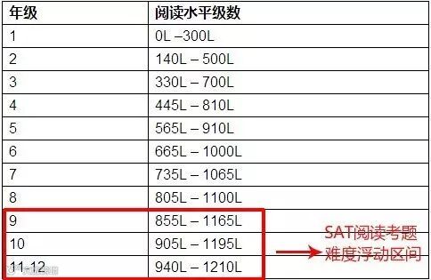 列一张Lexile根据年级的阅读分级表,大家可以先有点儿直观的认识: