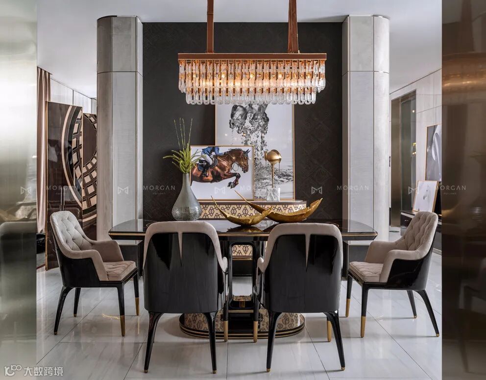 餐桌餐椅赋予家居空间高贵雅致的品味,是融合了上世界20年代的设计美学、时尚元素和建筑风格的杰出之作。将奢华与装饰艺术风格精雕细琢和充满现代主义的重要元素完美融合在一起。将传统的金属材质与创新的皮革制造工艺巧妙的集合起来,创造充满魅力的质感对比效果。精致悦目的设计造型配以高尚华美的饰面,凸显整个空间独具一格的特色。