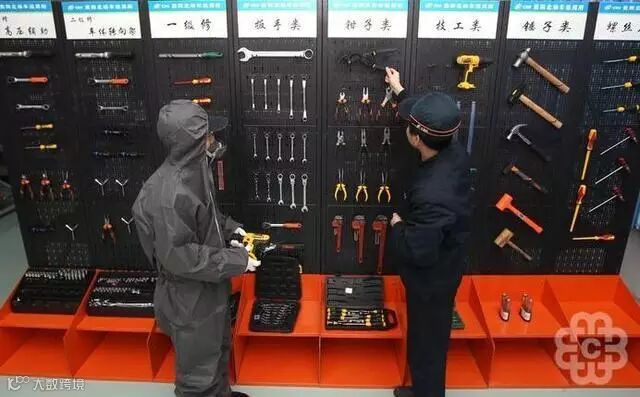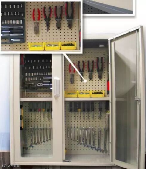 下图是民航飞机维修间的工具管理。