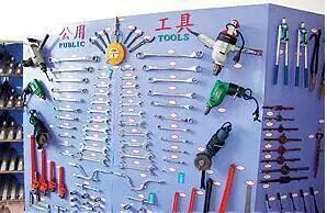 上图是某企业工具存放区域,这样的现场,找工具时间要耽误生产时间。