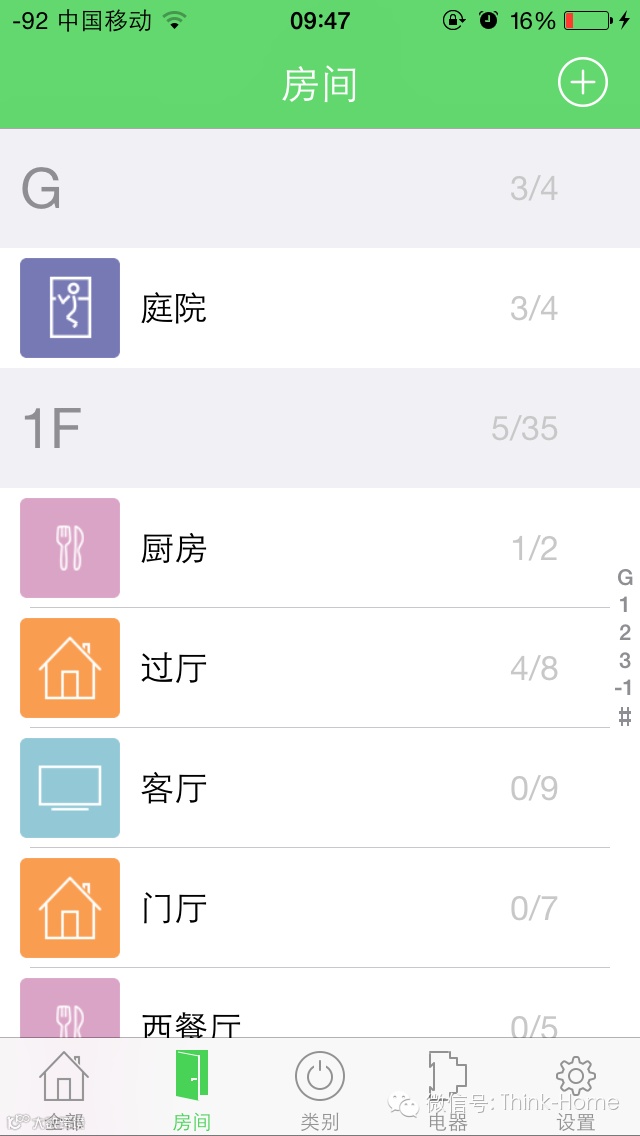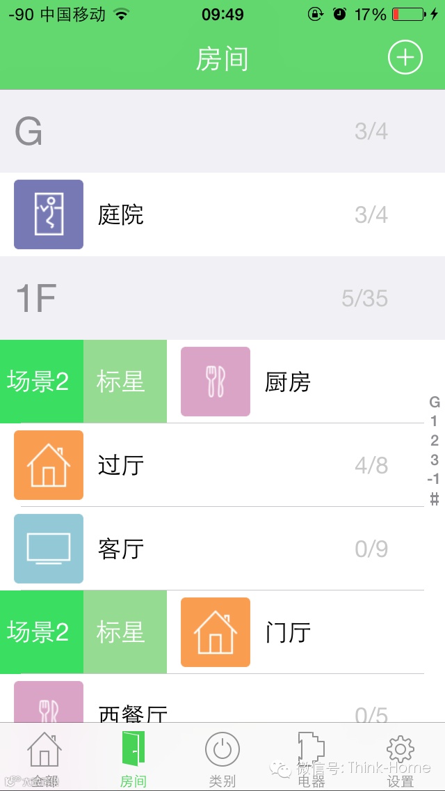 楼层+房间分类,且内部设备开启状态一目了然