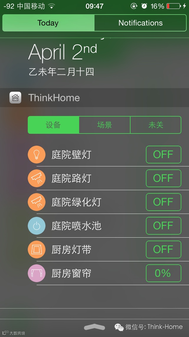 首先是一看就明白的通知中心Today下拉控制,跳过多重开启app控制受控节点的的麻烦