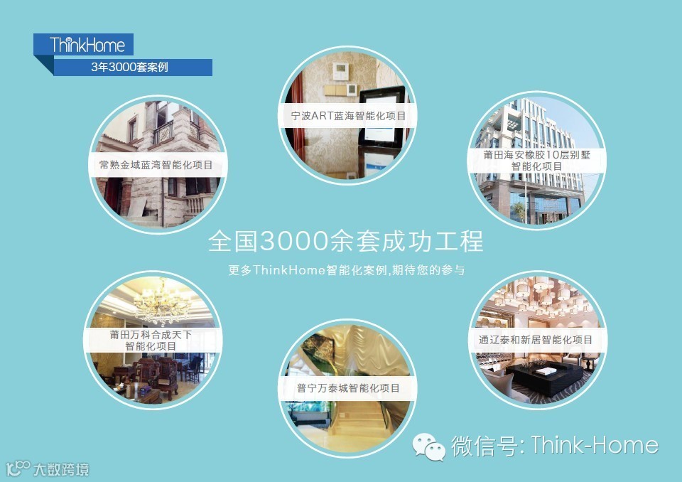 2012年,ThinkHome智轩全宅智能化产品正式市场推广,以其稳定、耐久、全面、真智、易装、经济六大特性深受市场消费者的青睐,三年间完成3000余套工程项目。