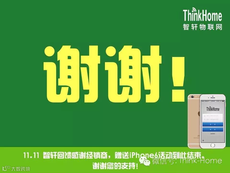 谢谢各位经销商老总,50台iPhone6|6plus已全部送完。没定到的我们明年再来。让我们携手努力,共创ThinkHome品牌,把稳定、耐久、全面的智能家居产品带入千家万户!