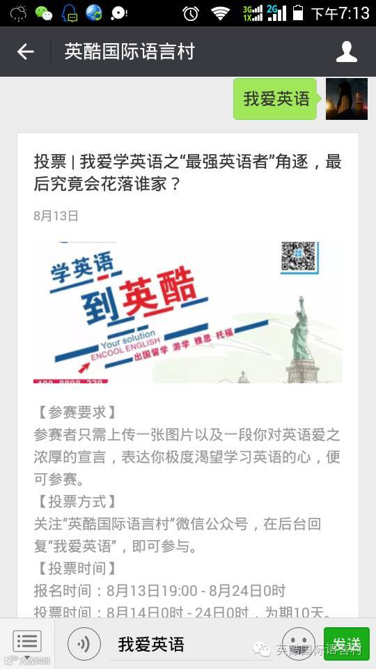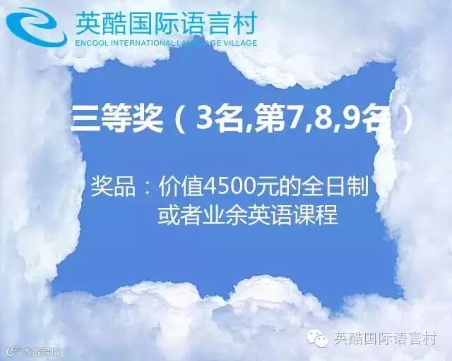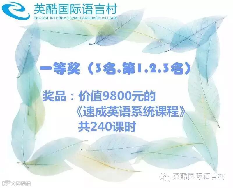 参与方式:①关注公众号“英酷国际语言村”,回复“我爱英语”即可。