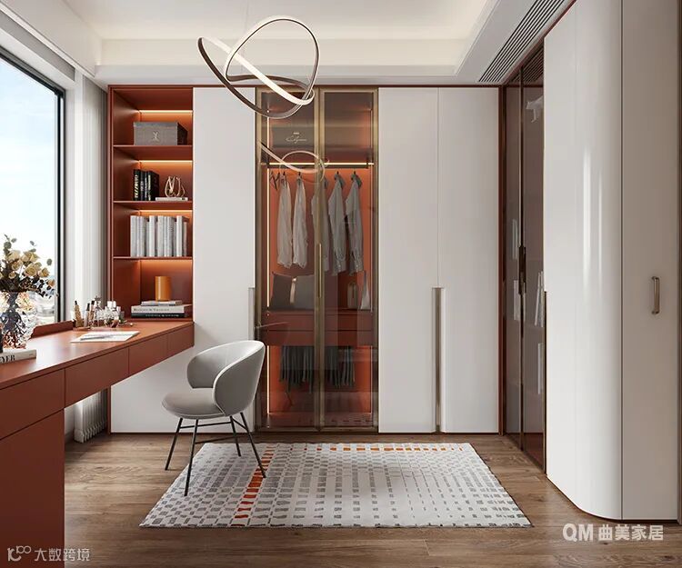 根据不同职业特点和喜好风格,给家中的男\女主人定制一个专属的私人办公、阅读空间,或是大衣帽间,可以偏向庄重肃穆,也可以古色古香,可以充满直男科技感,也可以是文化艺术从业者向往的慵懒、自由、充满想象力和设计感的空间,一个独立安静的书房大大提升居家幸福感。