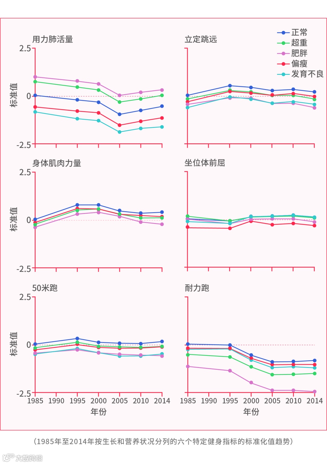 2019年12月,《南方周末》发布报道:一项涉及7至18岁近150万青少年学生的调研显示,以1985年调查结果为基准,此后三十多年里,仅1995年有所提高,之后一路降低,颓势不止。