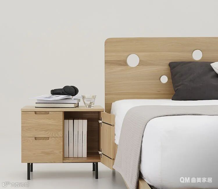 「集木」就是这样,打破常规,将印象中“敦实厚道”的实木原料,进行轻量化设计处理,尝试去掉各种繁复累赘的元素,以少量的装饰、内敛的细腻品质,留给用户清净的视觉、轻盈的空间感。