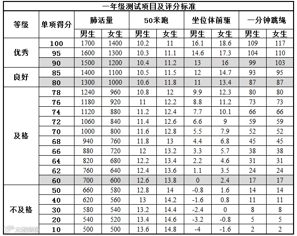 新版的《国家学生体质健康标准》-简称国标,全国小学已经陆续参考这个标准进行测试。EPE箐英体能整理了一~六年级男女学生各项达标成绩,供大家参考。家长们在关注孩子知识培养的同时,也不要忽略了体质的锻炼。