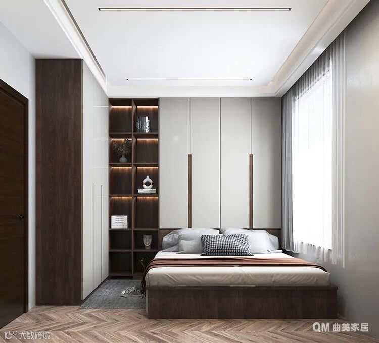 次卧面积比较小,为了节省空间增加储物功能,所以选择作榻榻米设计。床底可收纳过季衣服跟不常用的物品,绕床两侧庞大的柜体也有较大的储物空间。