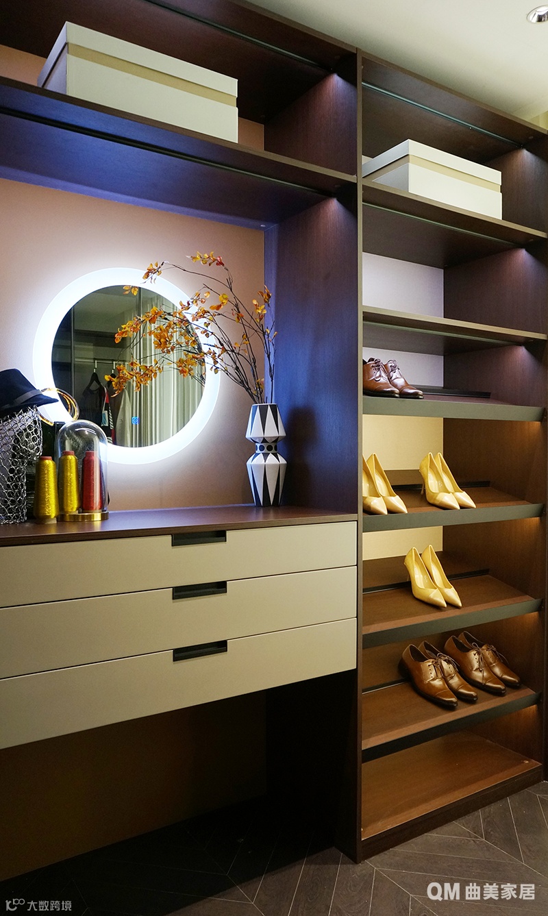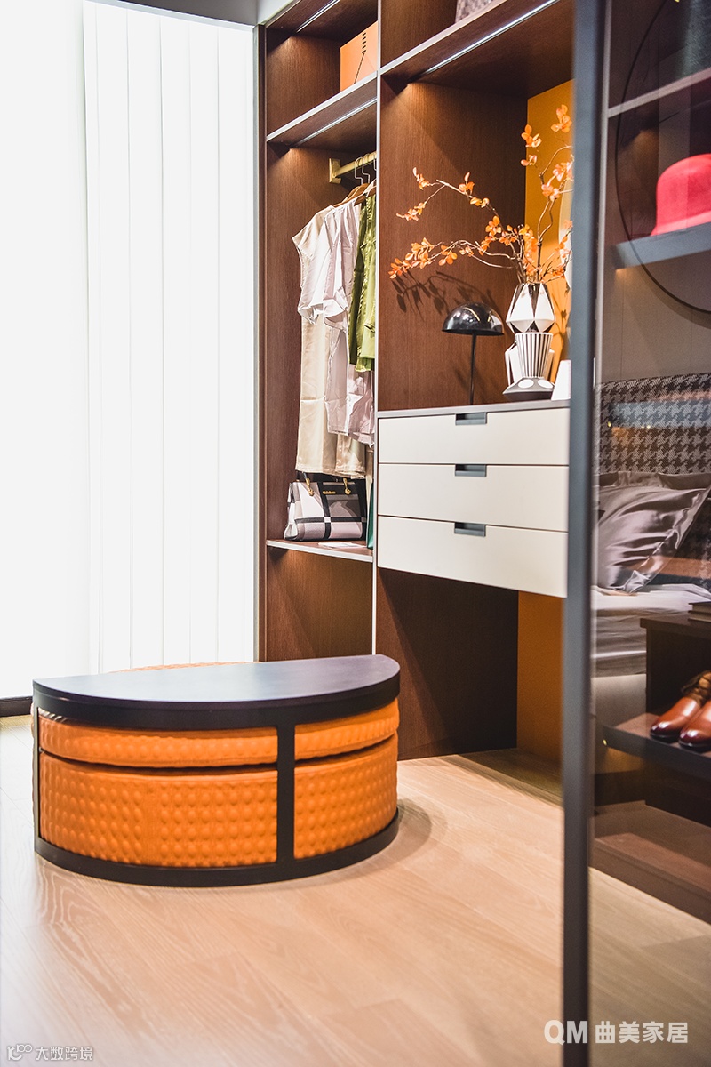 不用费心思猜里面是什么的开敞式衣柜里,我的粉色睡衣和大牌包一样显眼;和我在职场一样利落的睡眠区,床边的小摆件和永远定期更换的鲜花,是我少女心的不屈抗争。